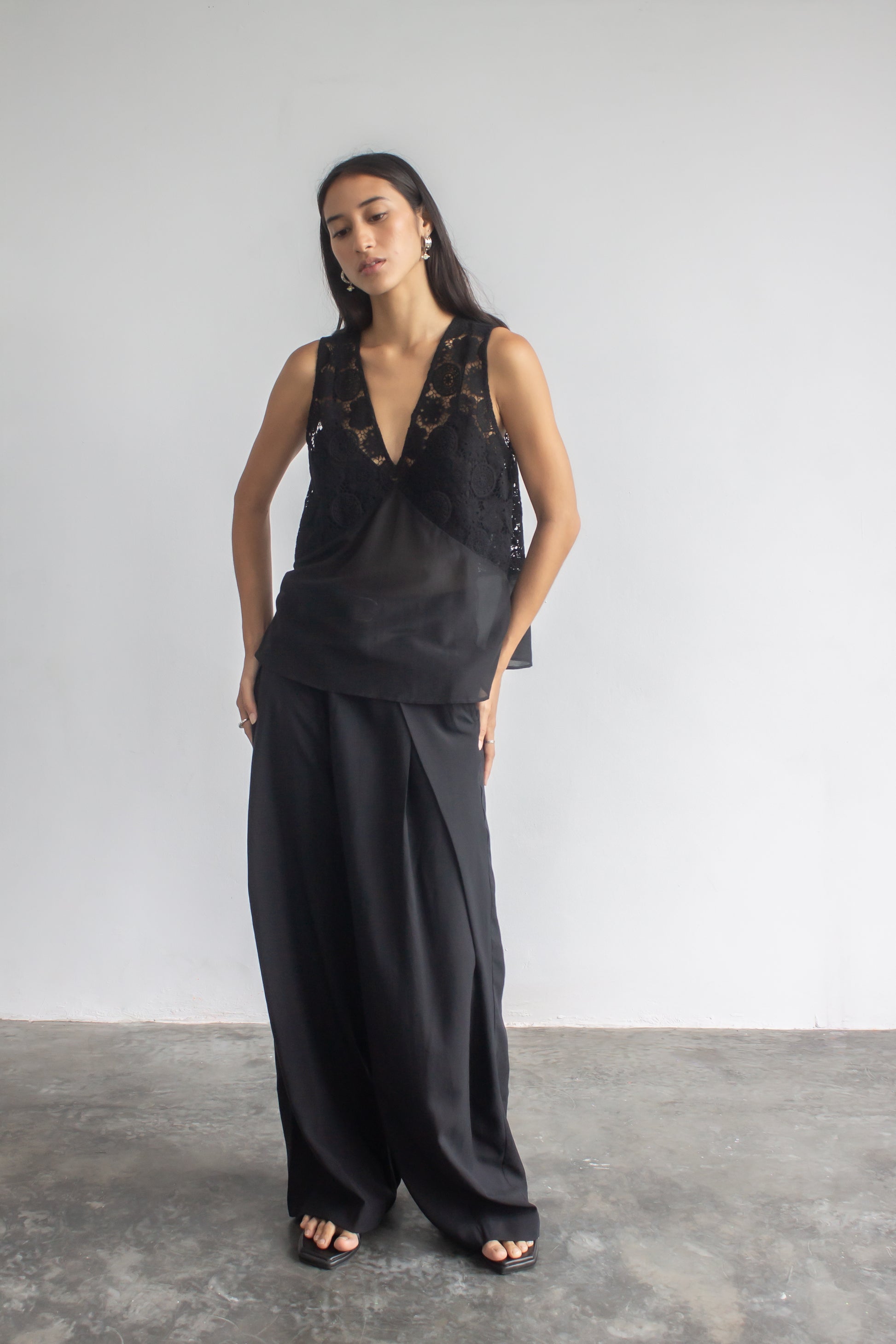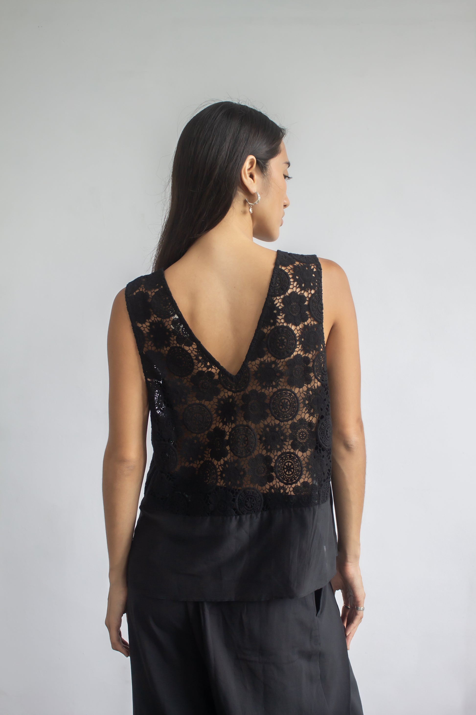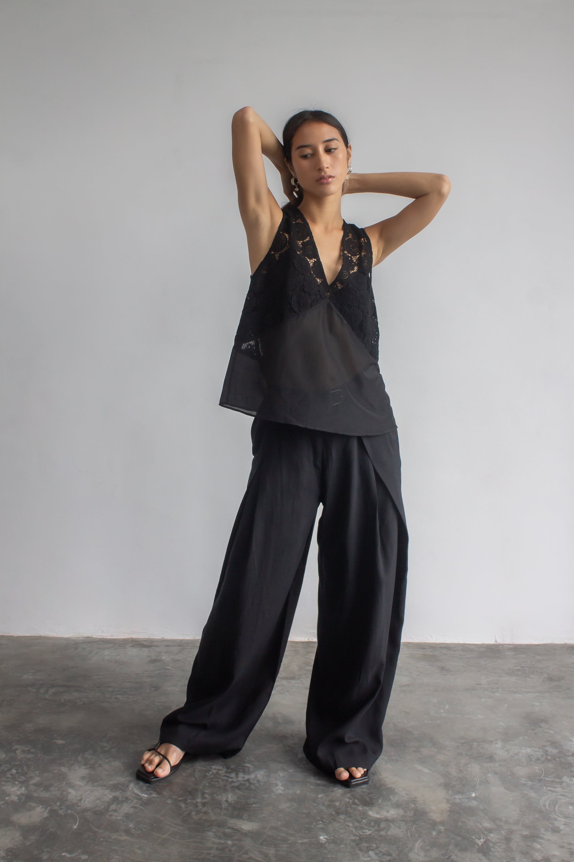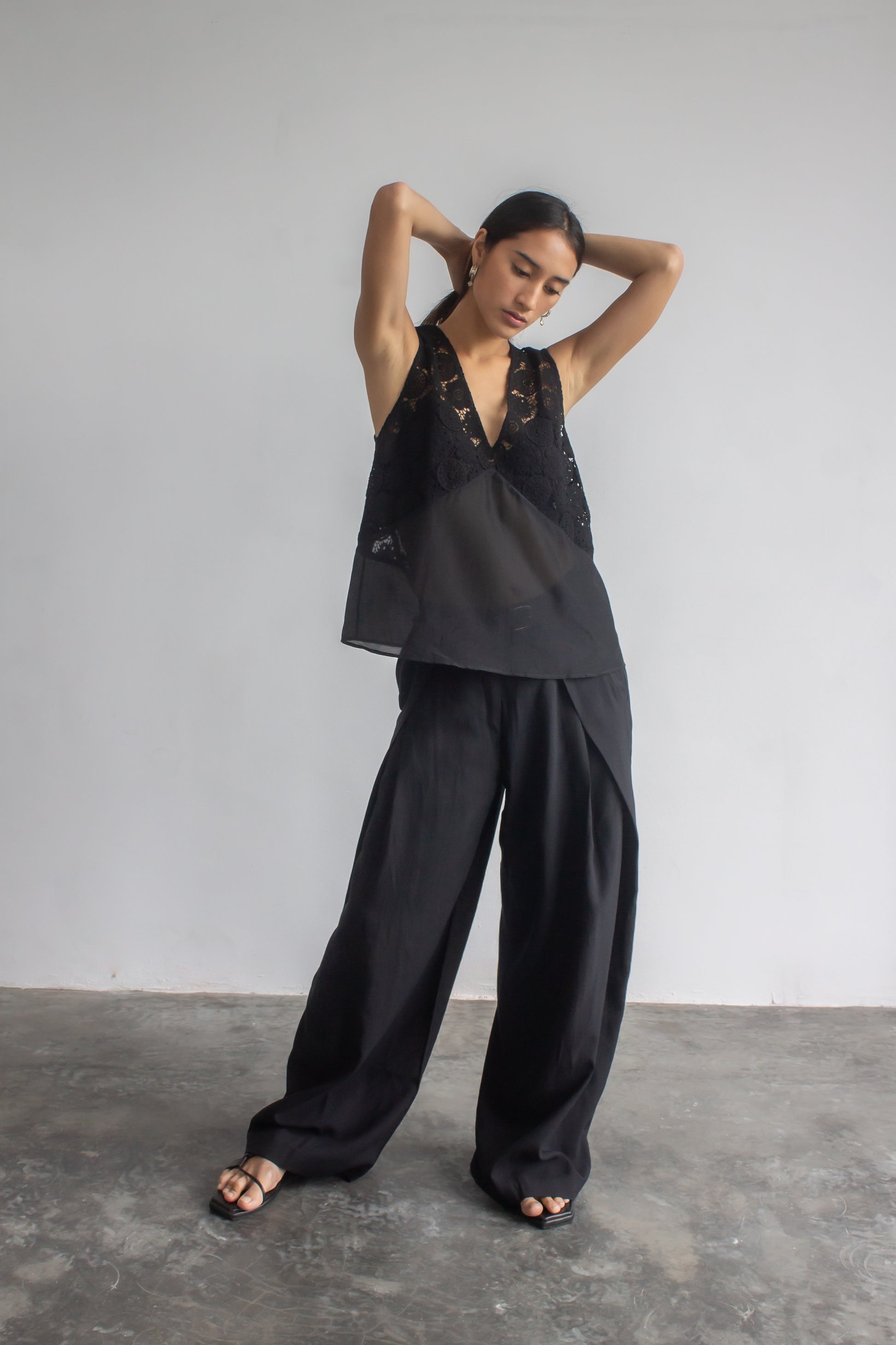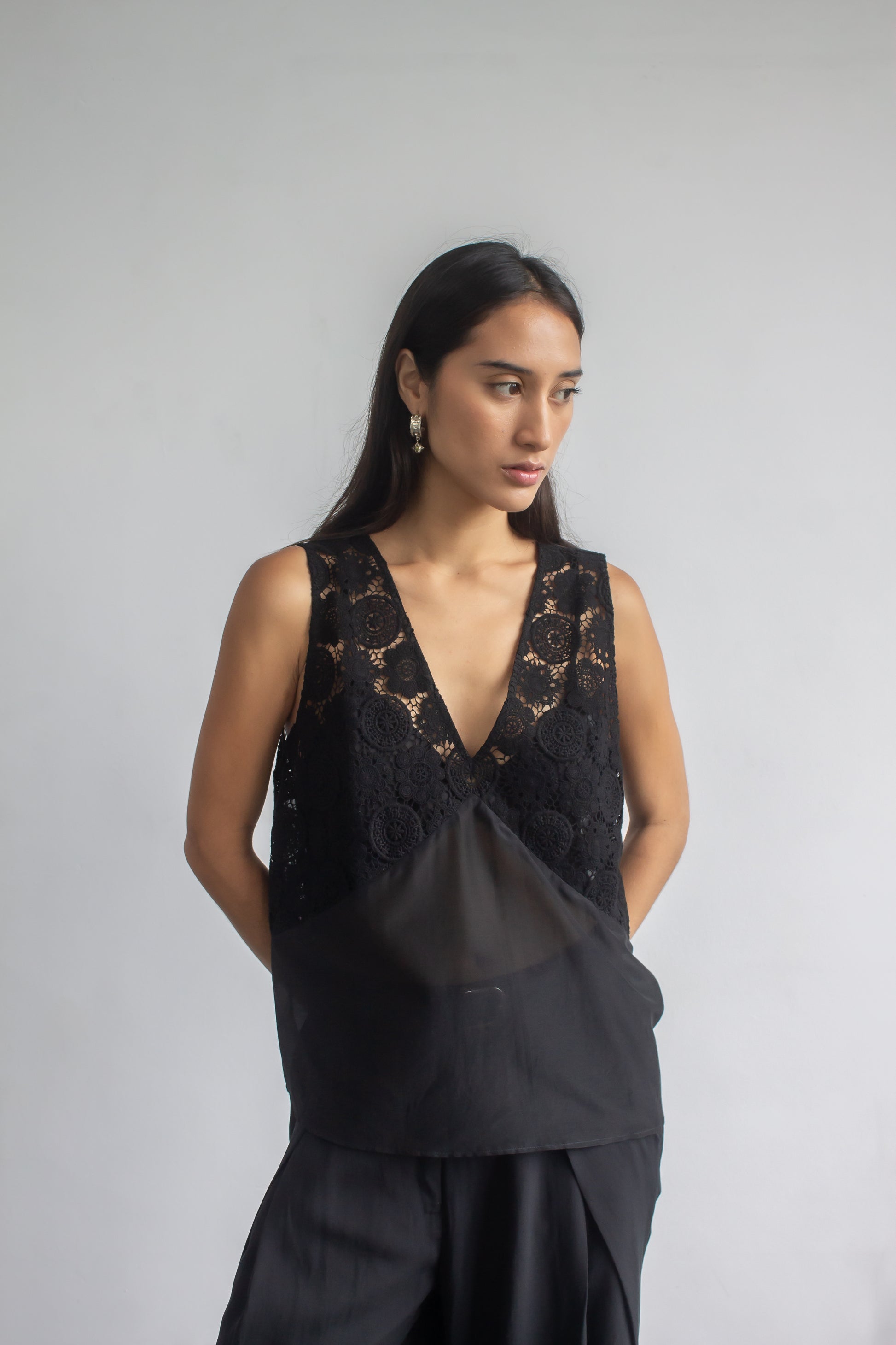 Inspired by vintage references, the Bohemian cropped top is cut from a silk-cotton blend with embroidered cotton panels. It features a deep V-neckline, a sheer back, and an easy A-line silhouette. Style it with leggings and ballet flats, or pair it with wide pleated trousers.