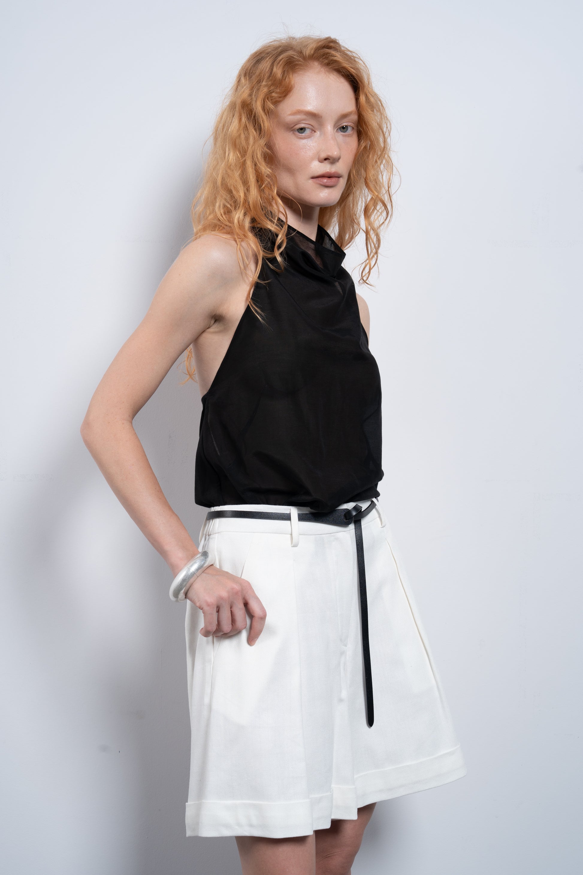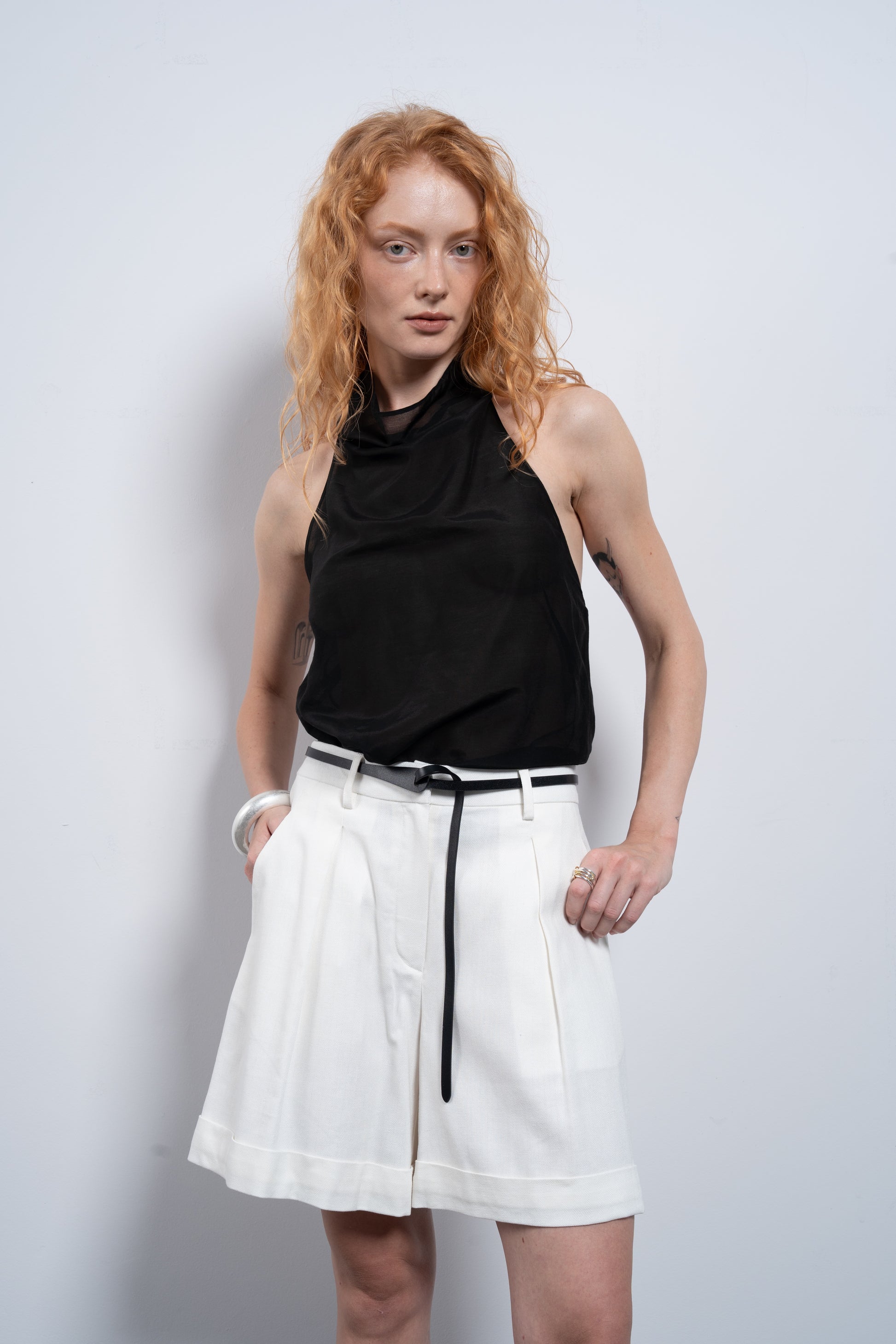 Designed with two stylish outward-facing darts, these knee-length shorts offer a unique and flattering silhouette. Made from premium Tencel, they provide a luxuriously soft feel against your skin, ensuring comfort throughout the day. Pair them with a satin top for a stylish look, or with a bamboo tank for a casual yet refined style.