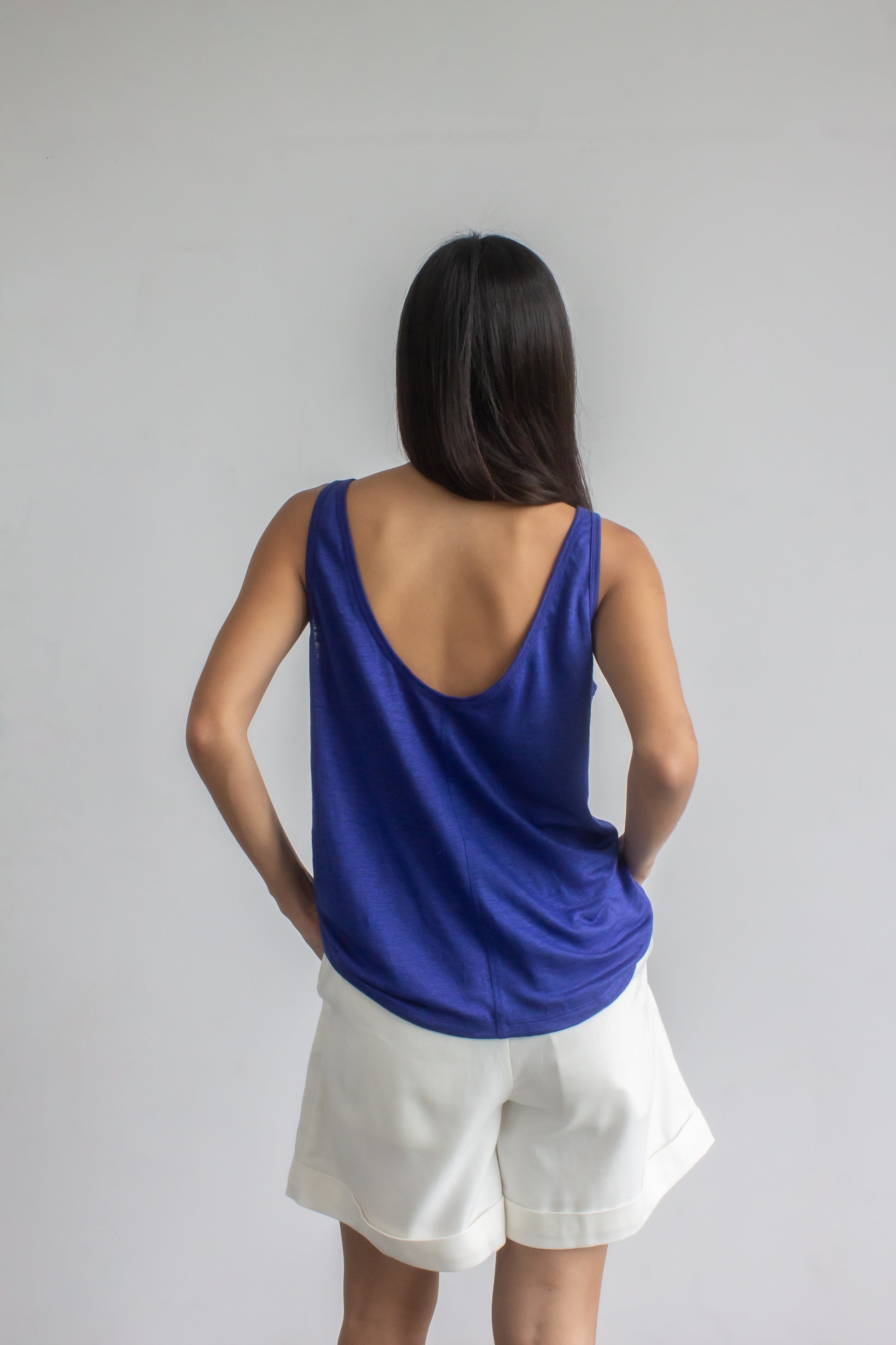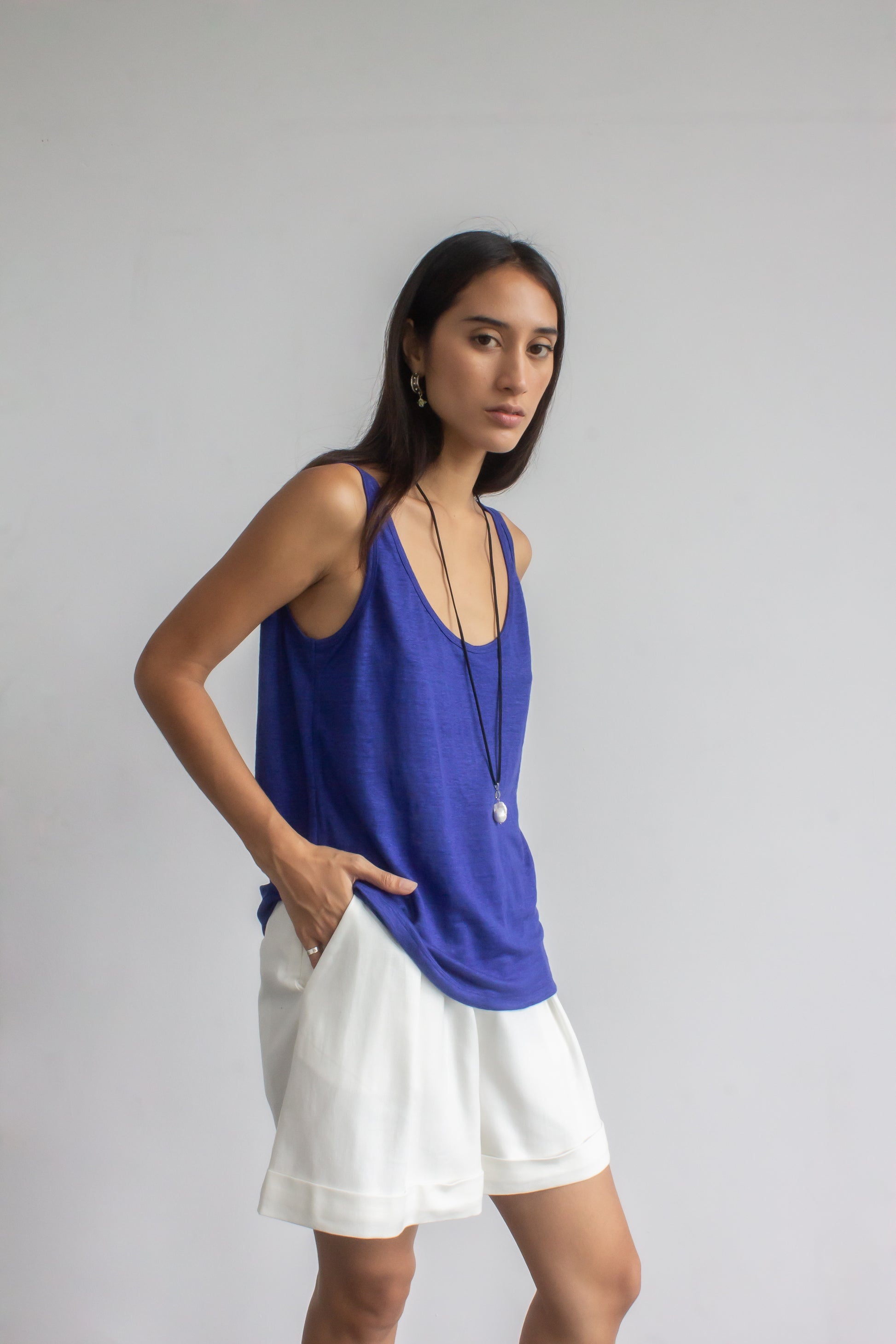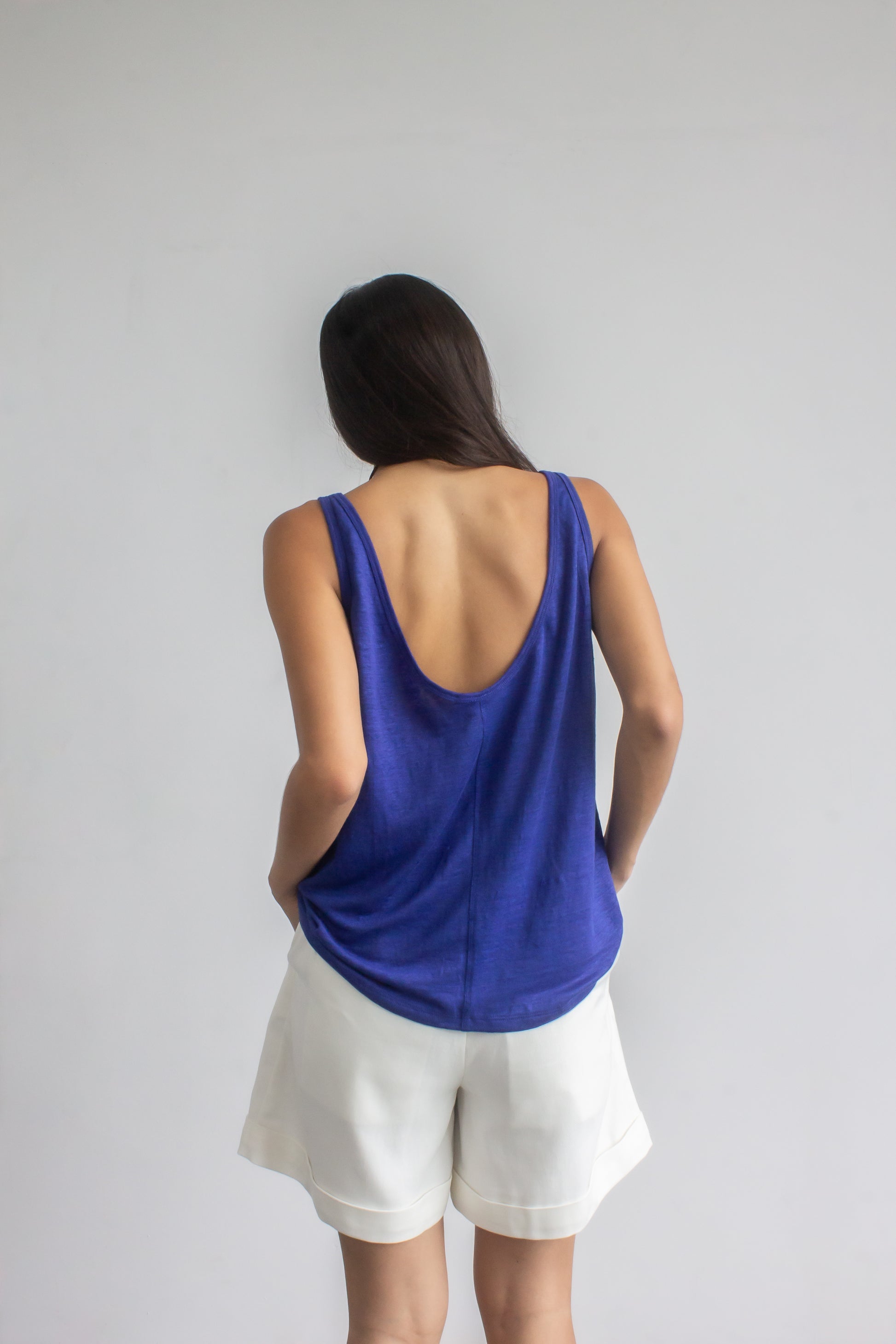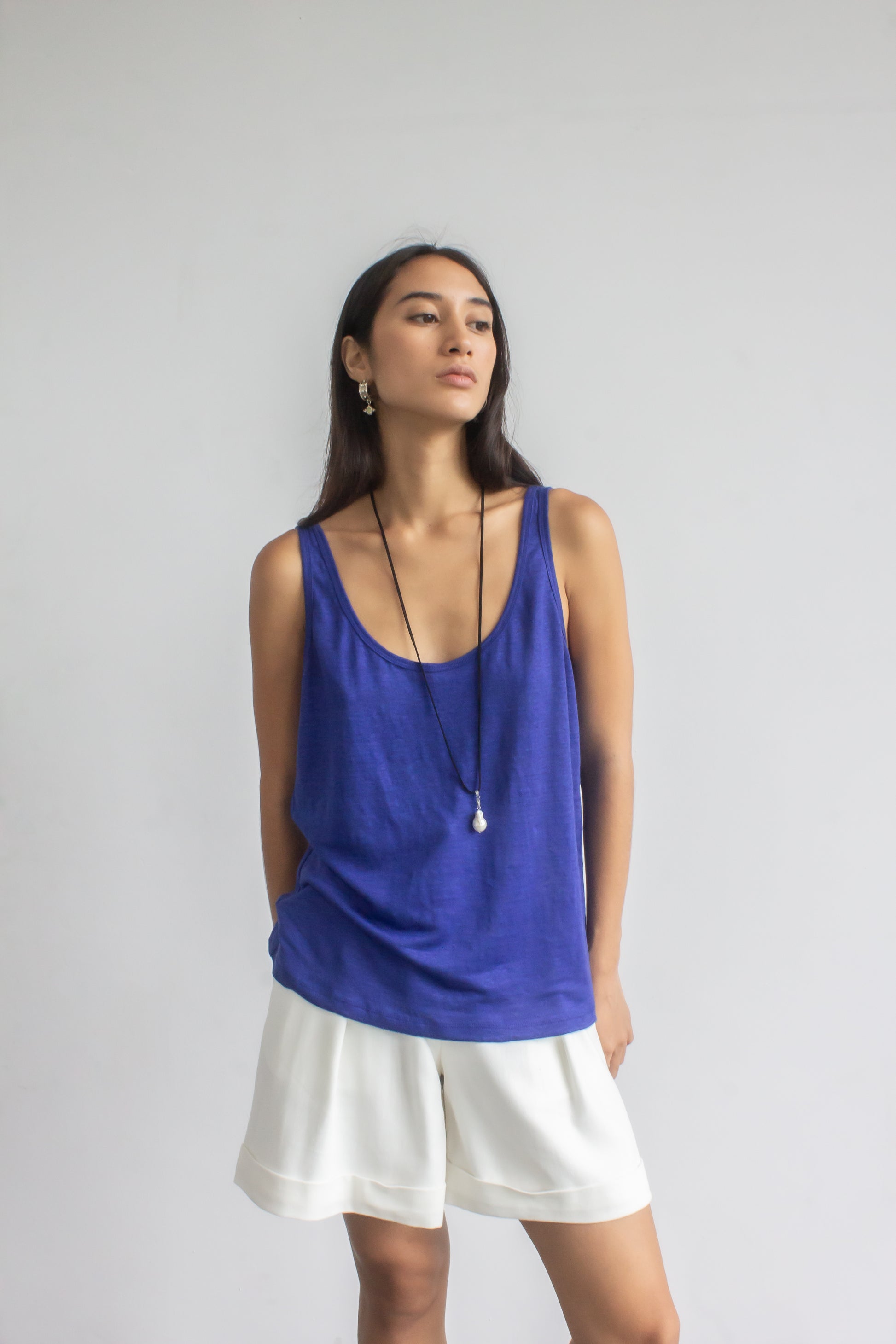 Crafted from pure linen, this loose-fit top drapes elegantly with a flattering scoop neckline and low-cut armholes. Wear it solo with our satin palazzo pants for an evening out, or pair it with classic pleated shorts for an office-ready summer look.