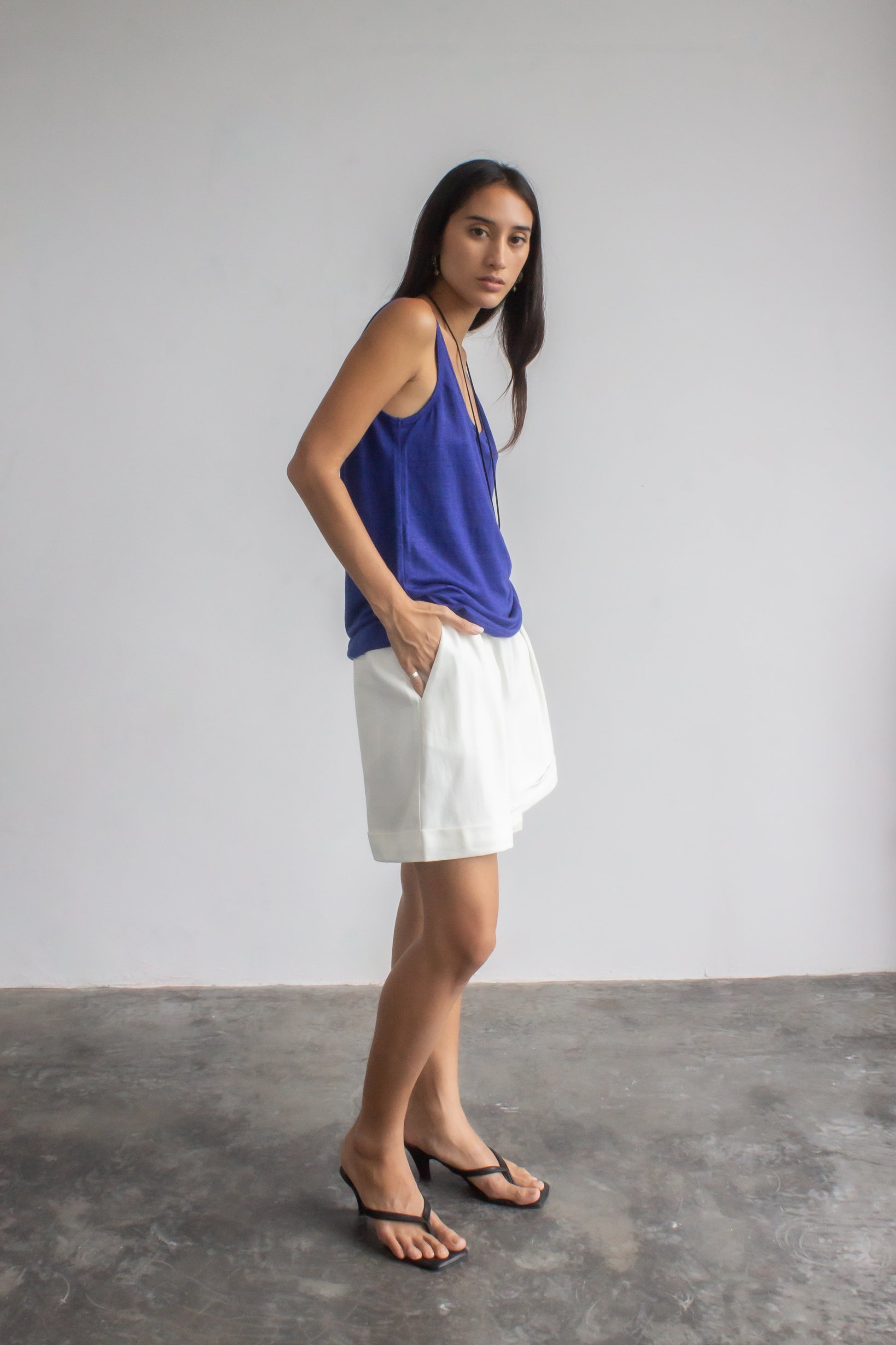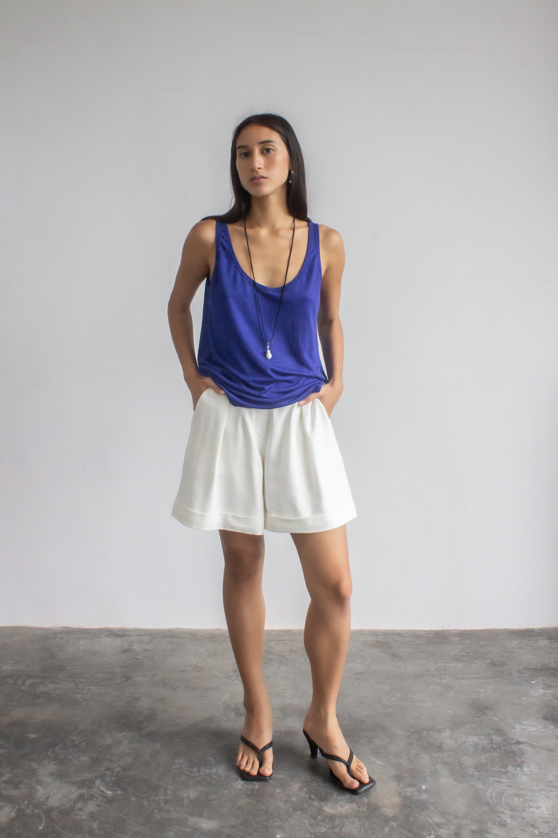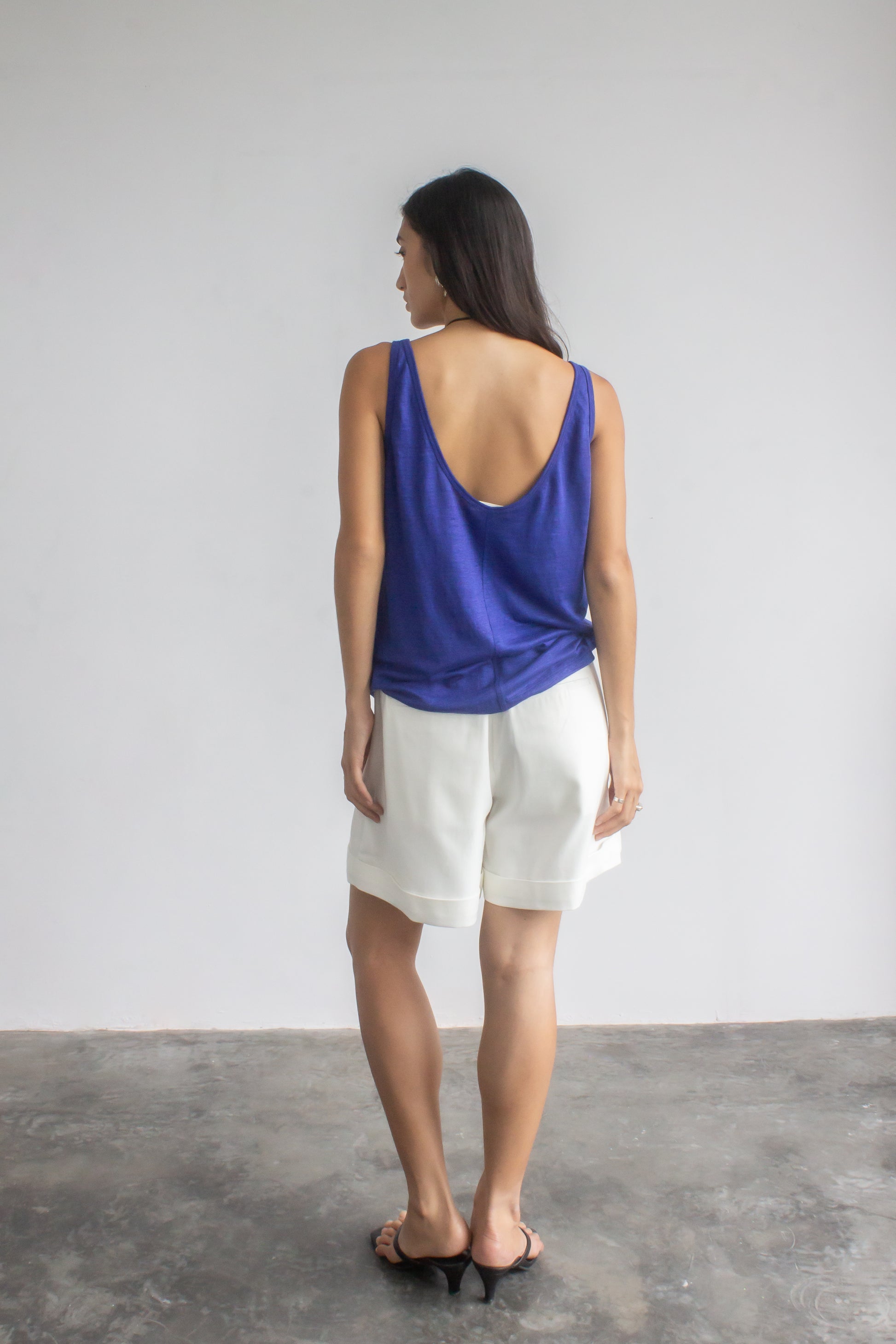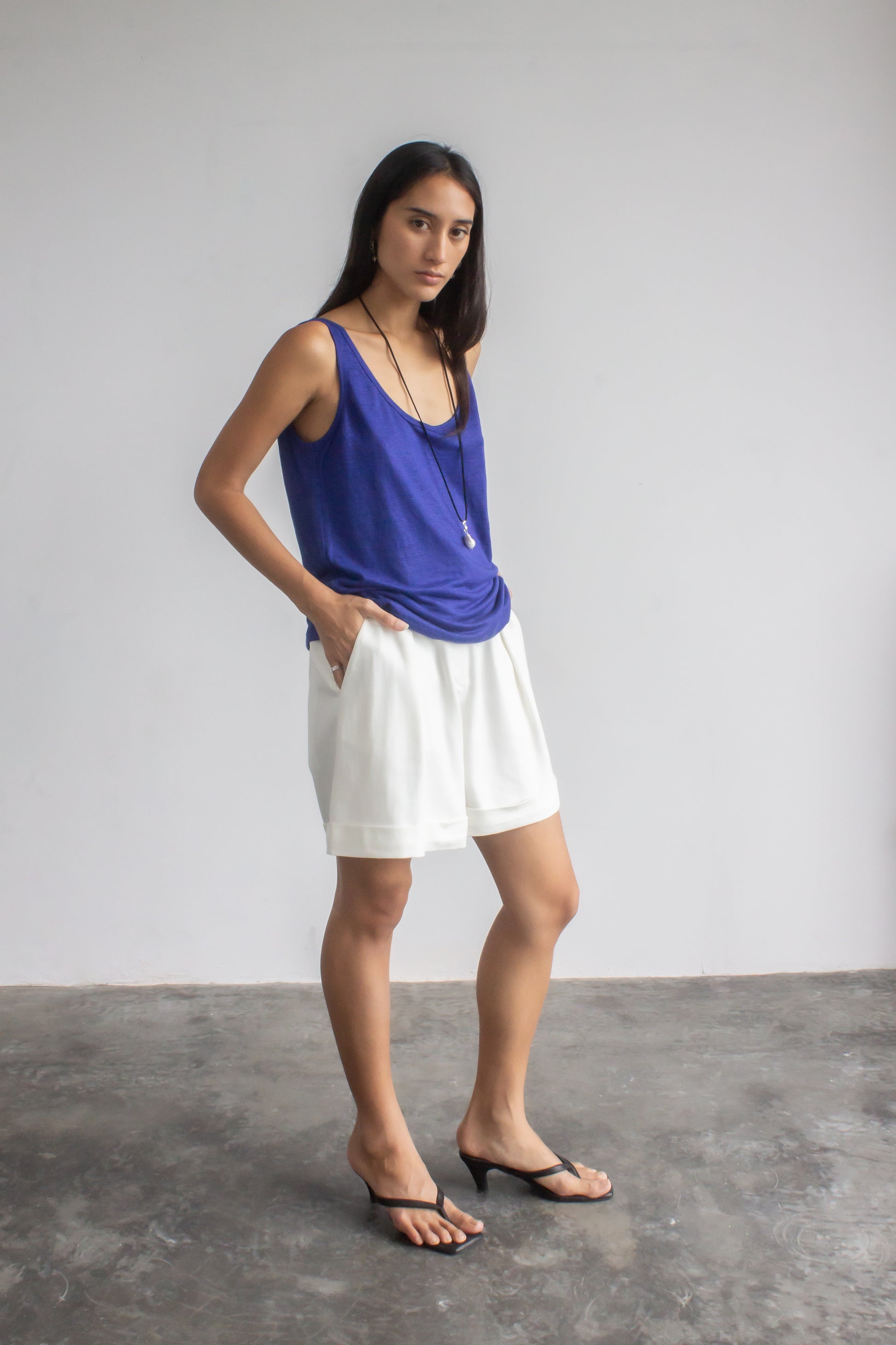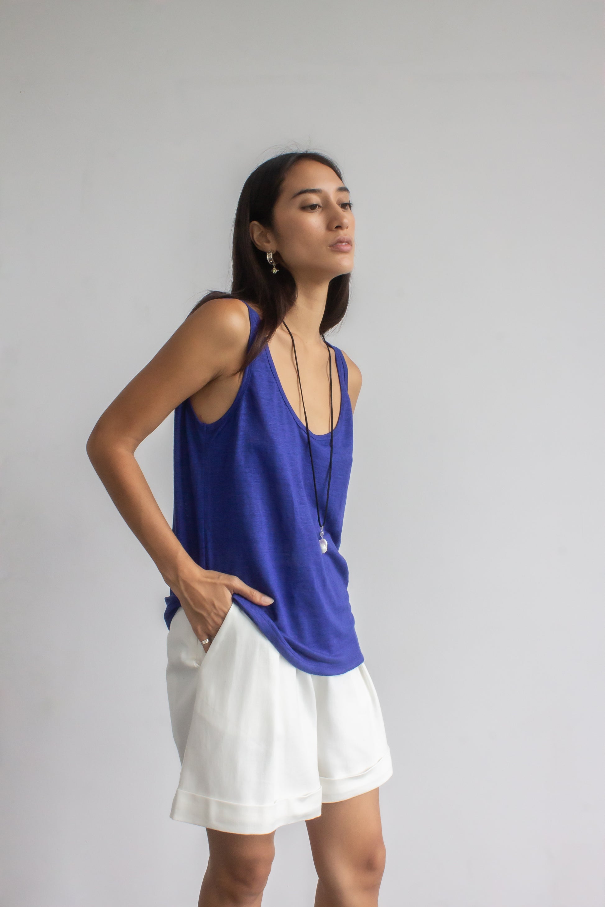 Crafted from pure linen, this loose-fit top drapes elegantly with a flattering scoop neckline and low-cut armholes. Wear it solo with our satin palazzo pants for an evening out, or pair it with classic pleated shorts for an office-ready summer look.