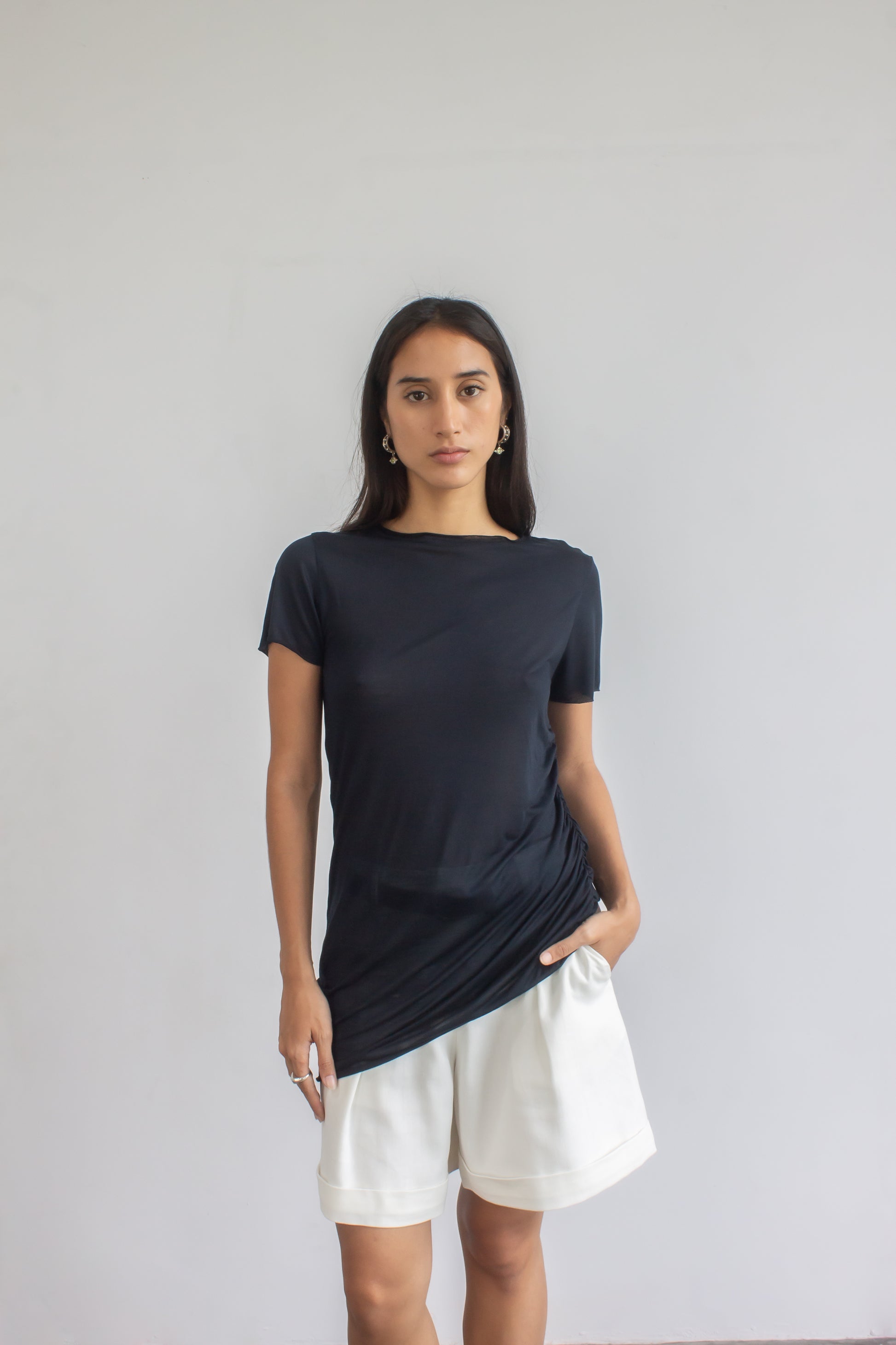 The styling options are endless with our "Not a must" bamboo tank top—wear it alone with satin pants, our linen tailoring shorts, or your favourite jeans. It's made from ribbed-knit for a close fit and comes in off-white and black.