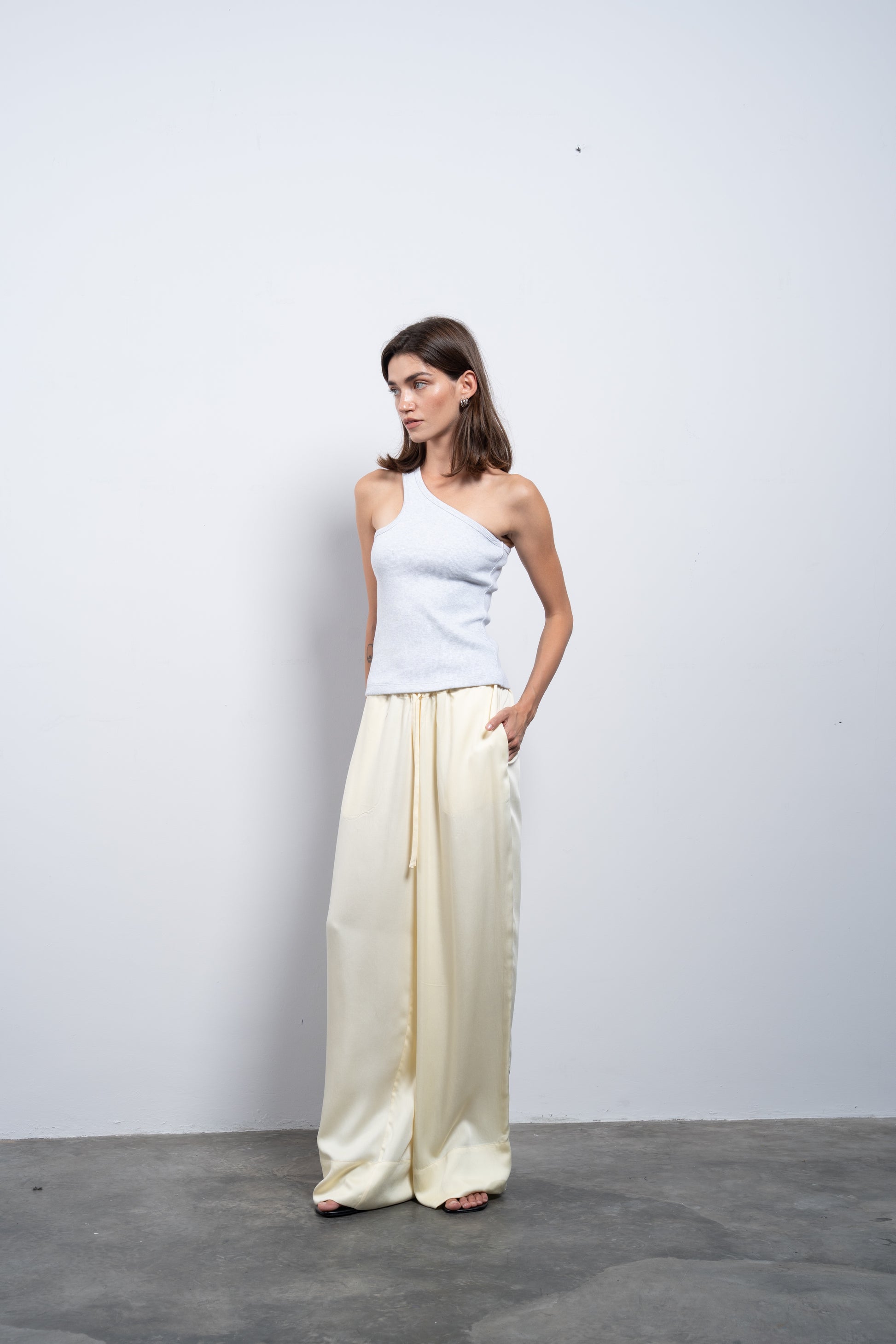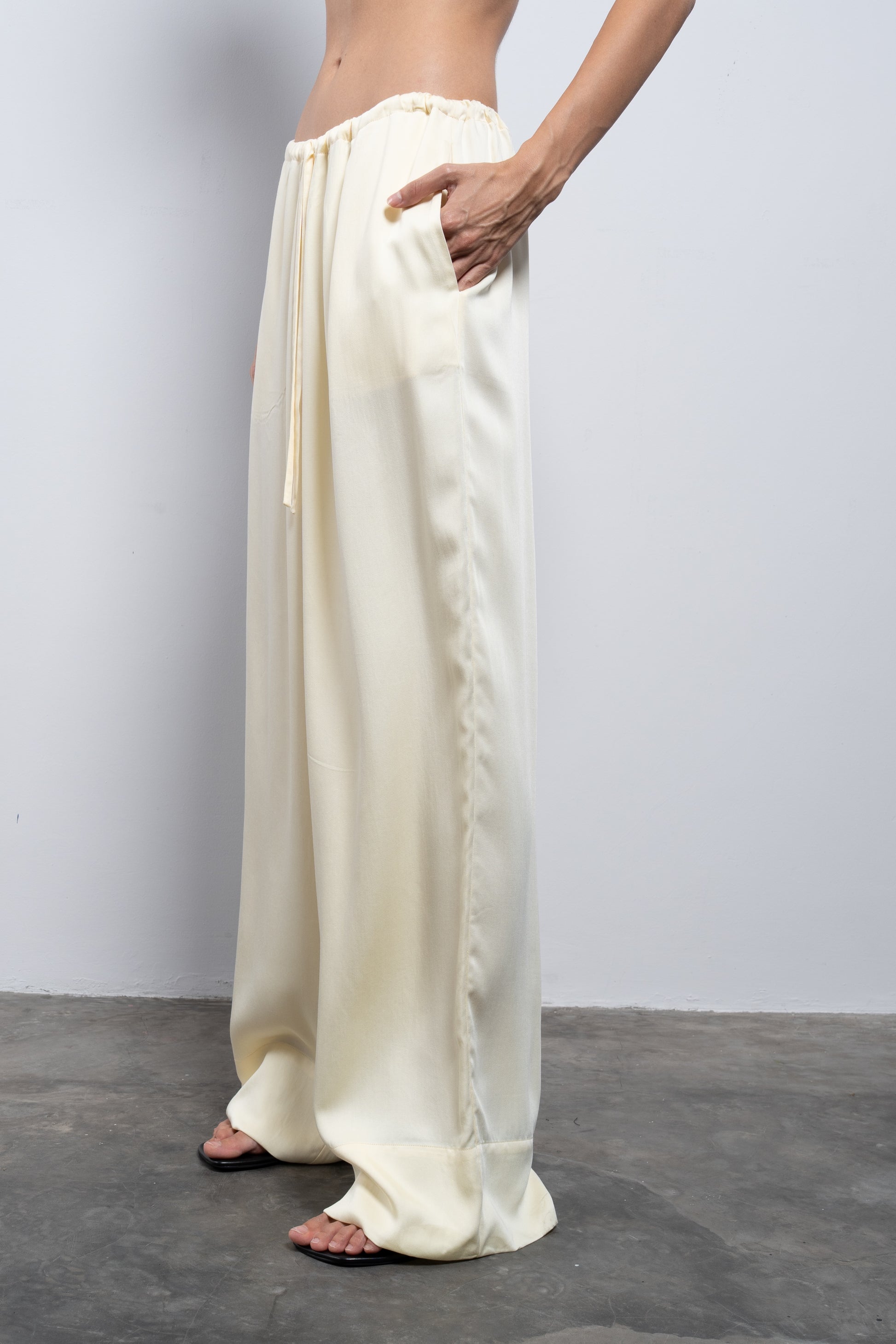 When it comes to selecting fabrics, the key factors are how they drape and feel. These pants are crafted from fluid modal, which is incredibly soft and lightweight against your skin. They feature an elastic waistband and roomy wide legs. Pair them with a loose blouse or a tank top for a stylish look.