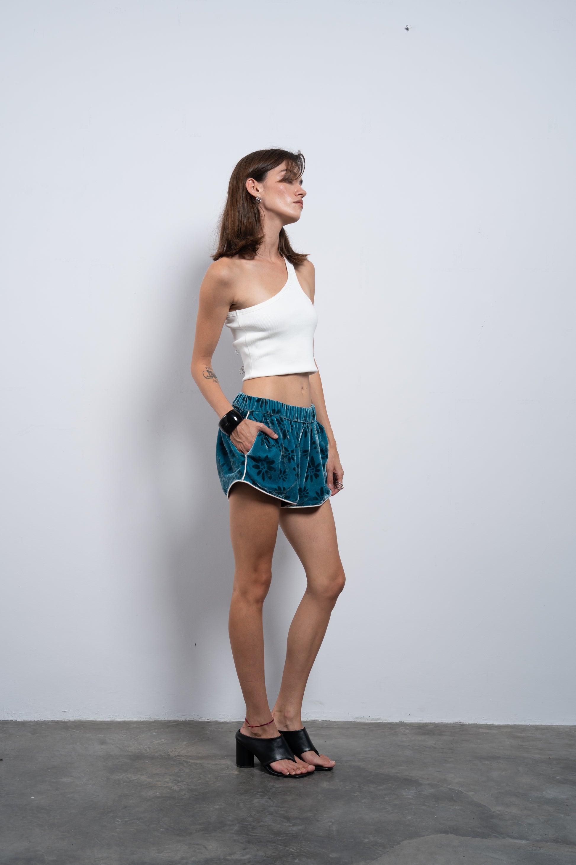 Discover the perfect fusion of sporty and chic with our silk velvet shorts. Crafted from 100% luxurious silk and lined with silky viscose, these shorts bring unparalleled comfort. Inspired by the dynamic fit of Muay Thai, they add a touch of fierce elegance to any look. The contrast piping along the sides enhances the silhouette, making them a standout piece for any wardrobe.