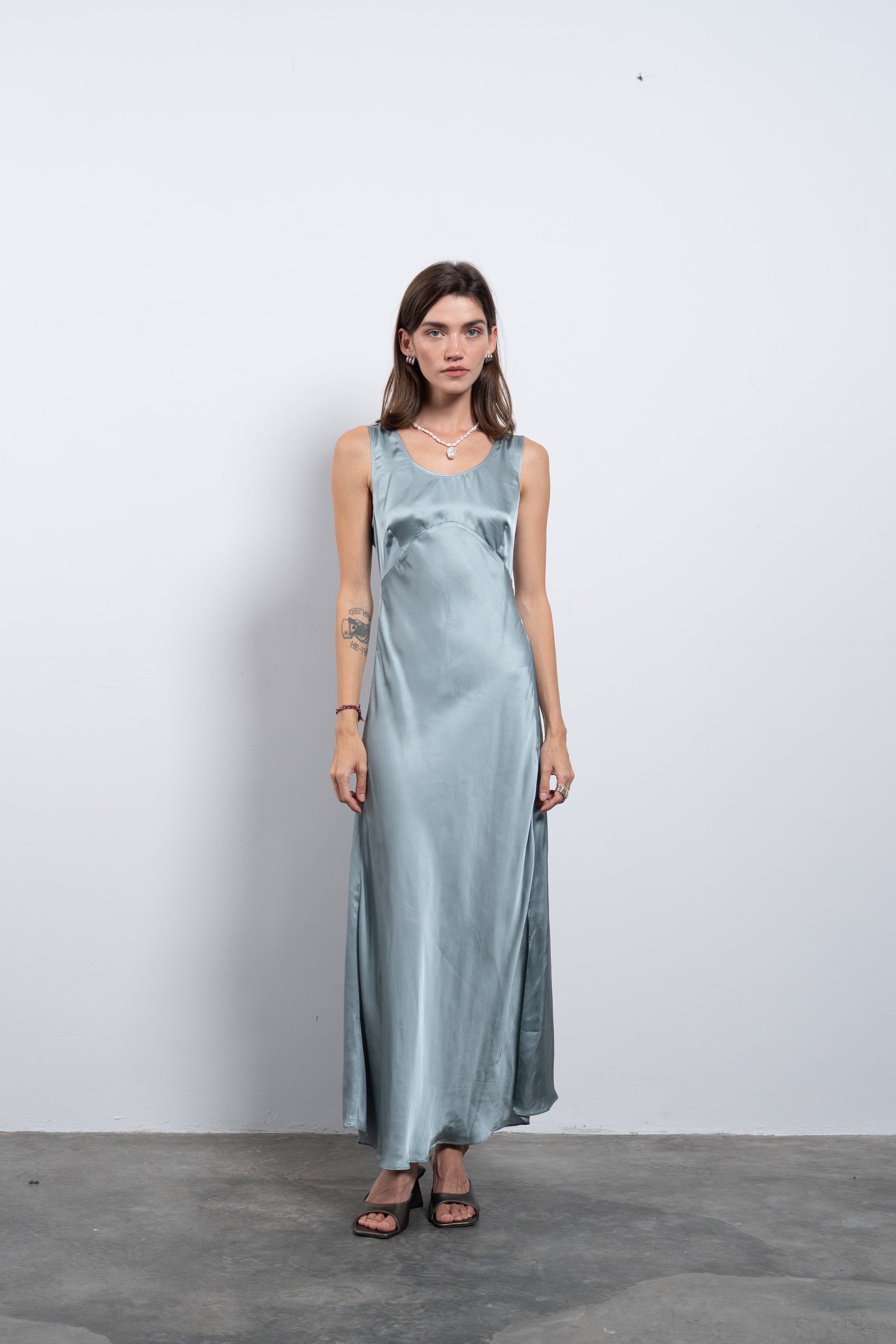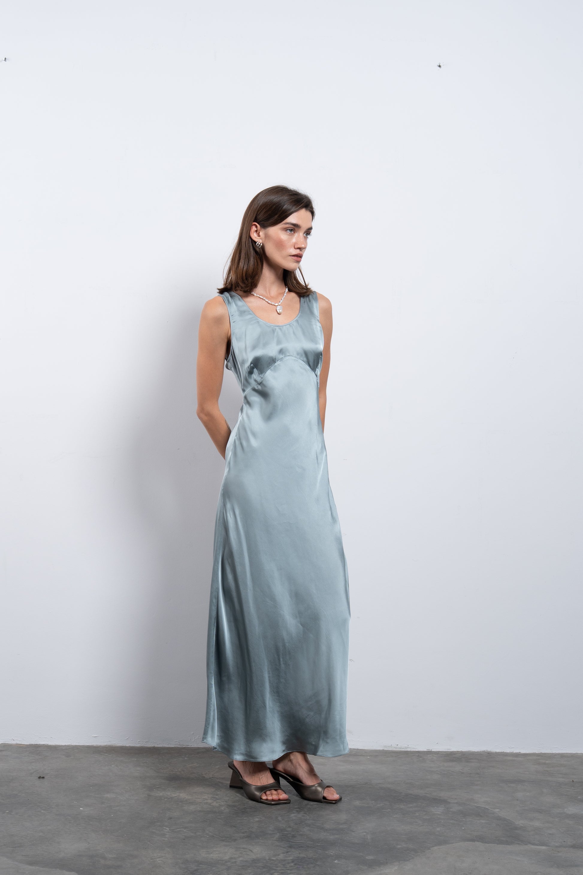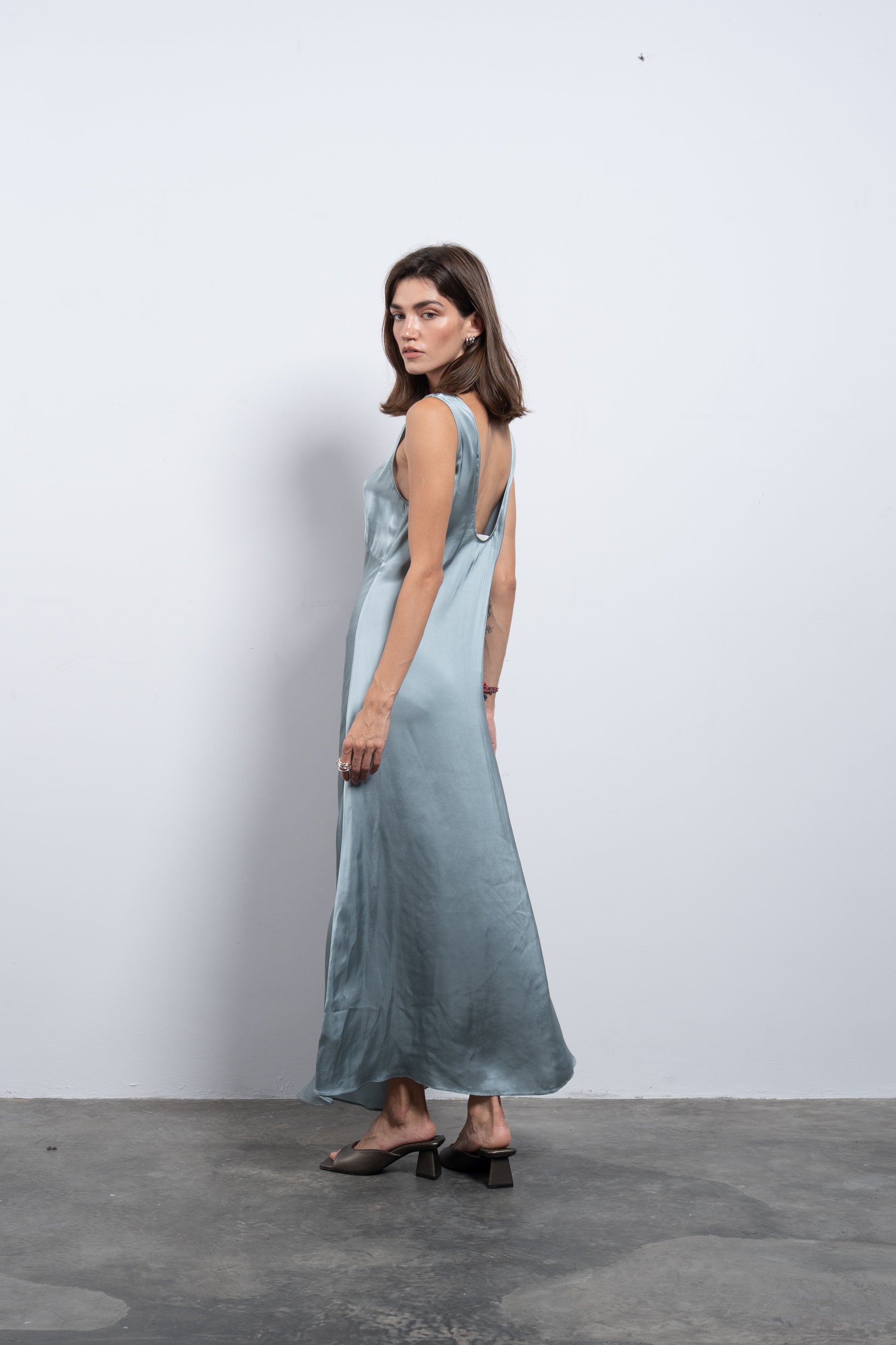 This midi dress is incredibly easy to style, making it perfect for vacations or last-minute parties. It is cut on the bias from natural modal fabric that skims your frame and features an asymmetric hem that mirrors the sweeping one-shoulder neckline. The dress has a gathered detail on the shoulder that adds a chic touch. Layer it over a simple tank top for a more casual look, or wear it as a standalone dress for a night out.