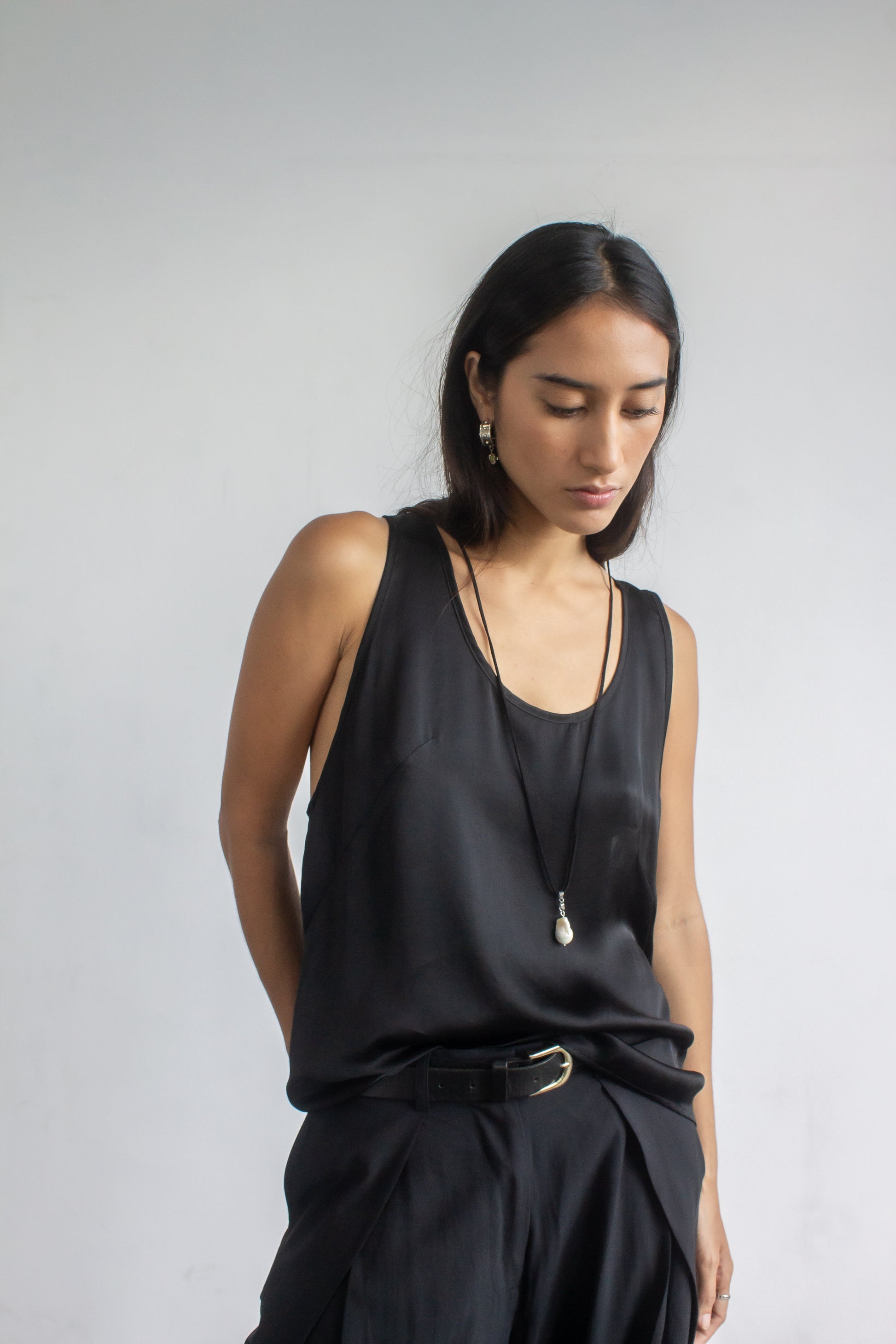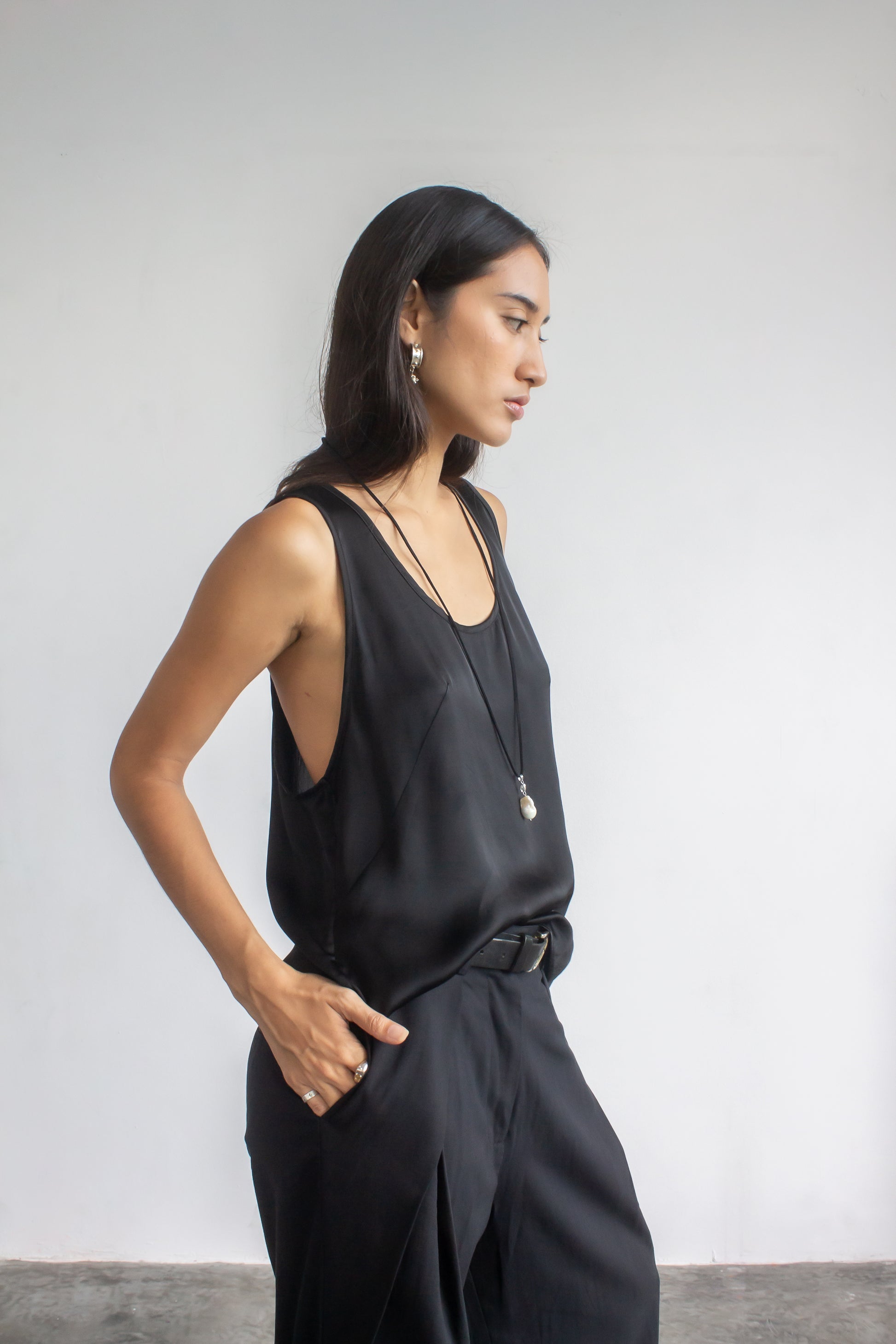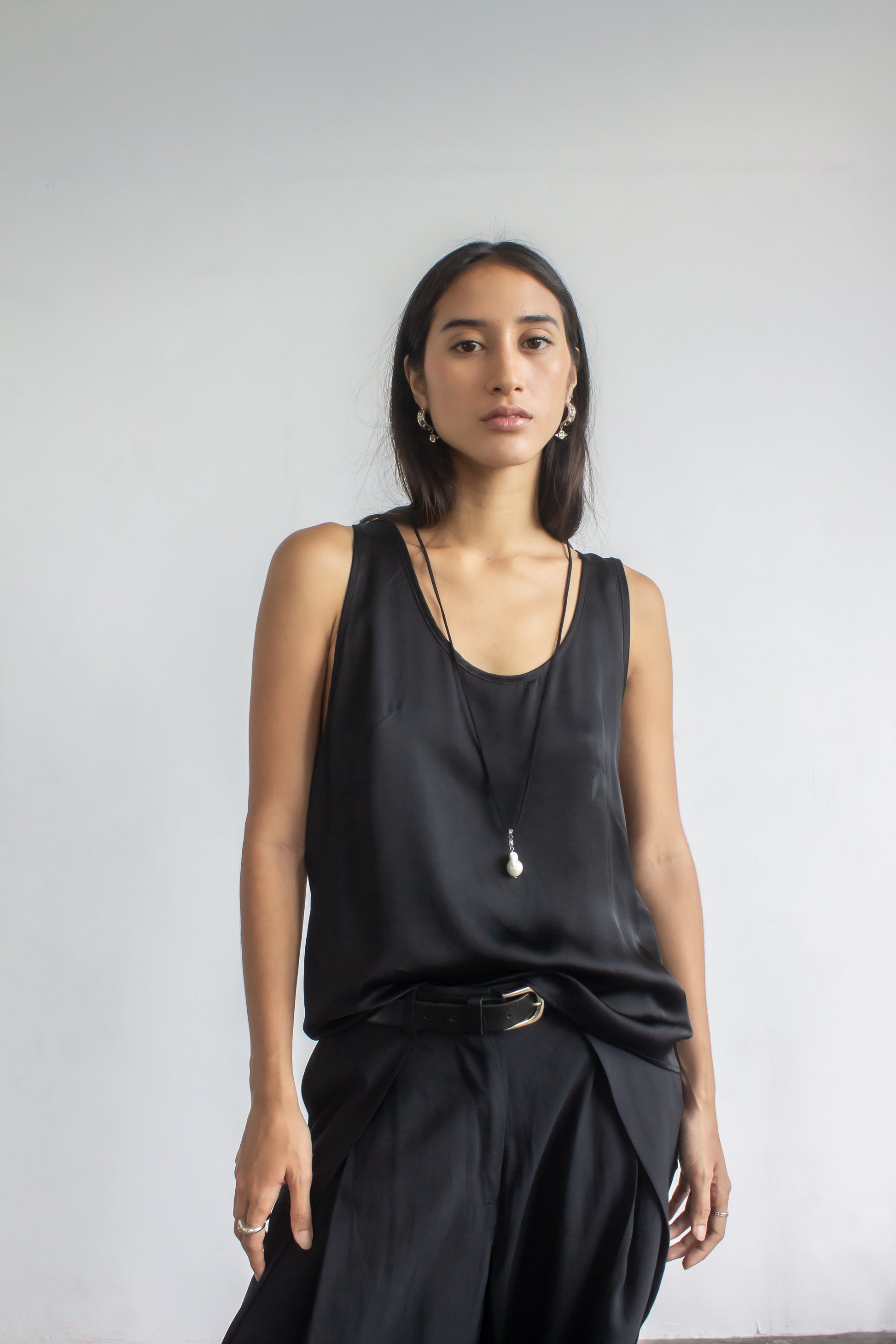 Cut from fluid satin, this top has a relaxed fit shaped by front darts and a flattering scoop neckline. Wear it solo with our satin palazzo pants for a night out, or pair it with classic pleated trousers for an office-ready summer look.