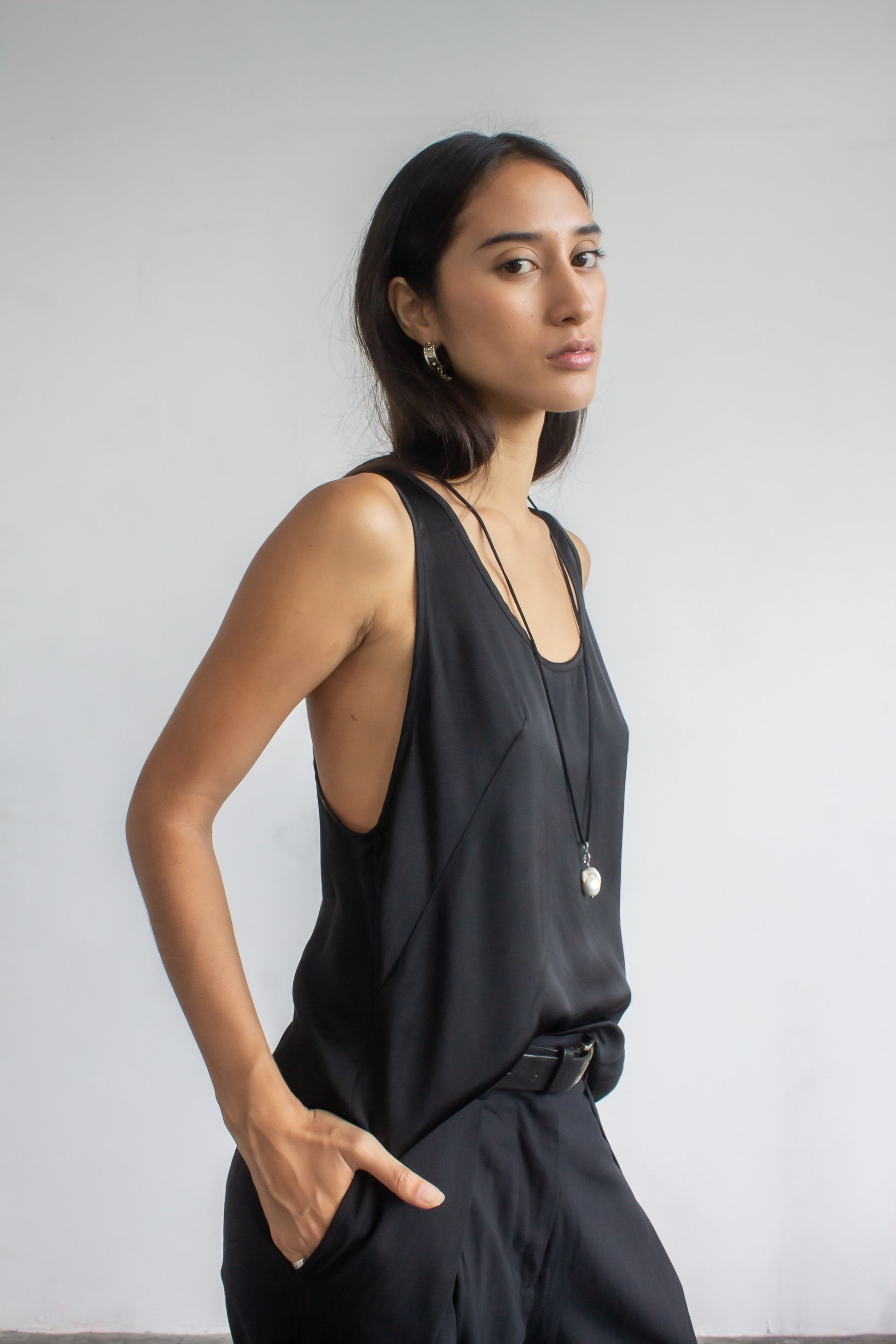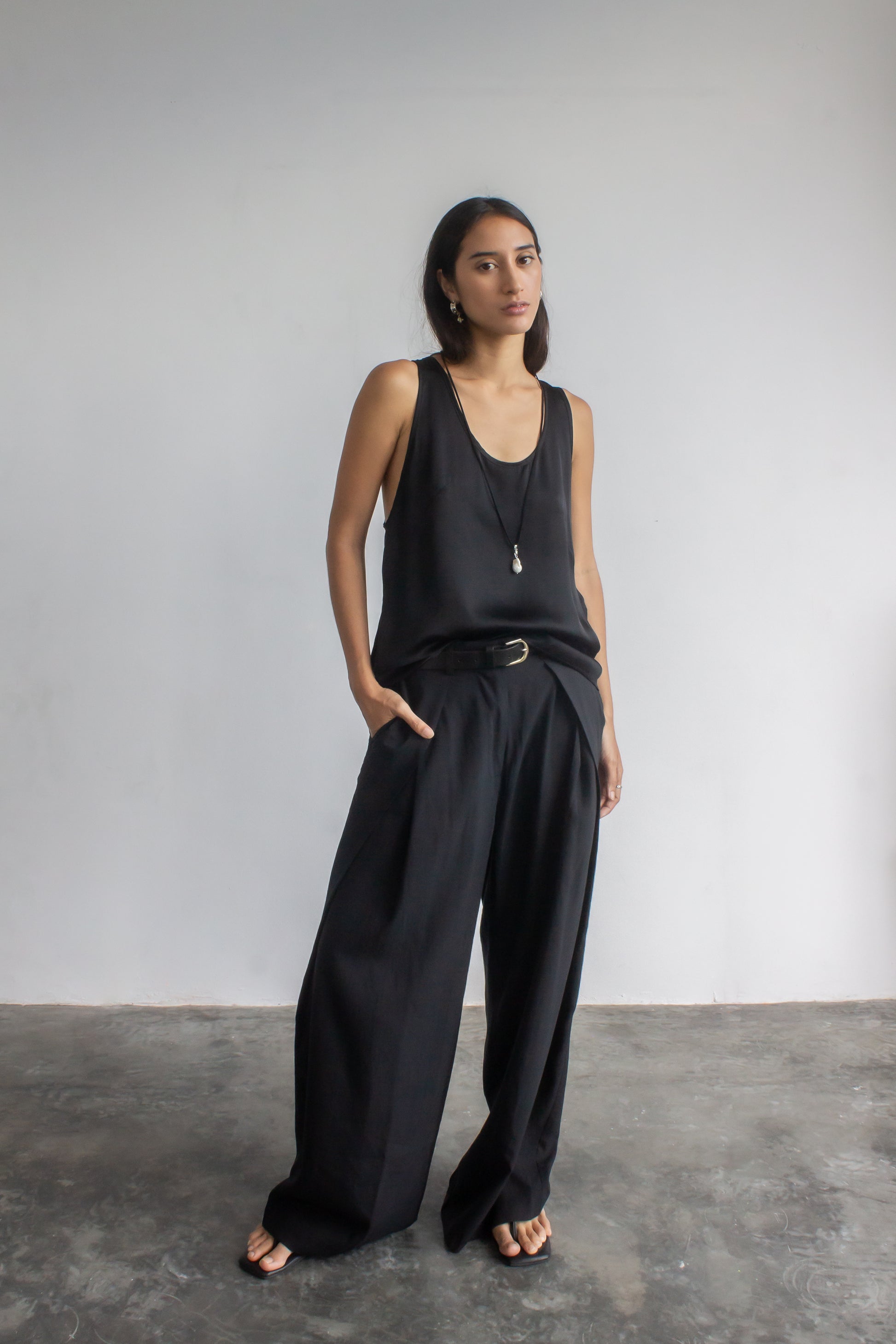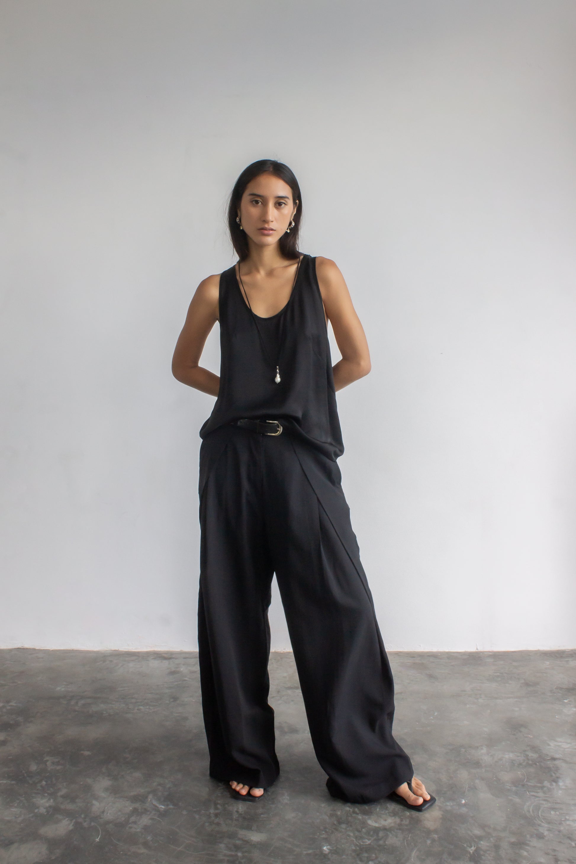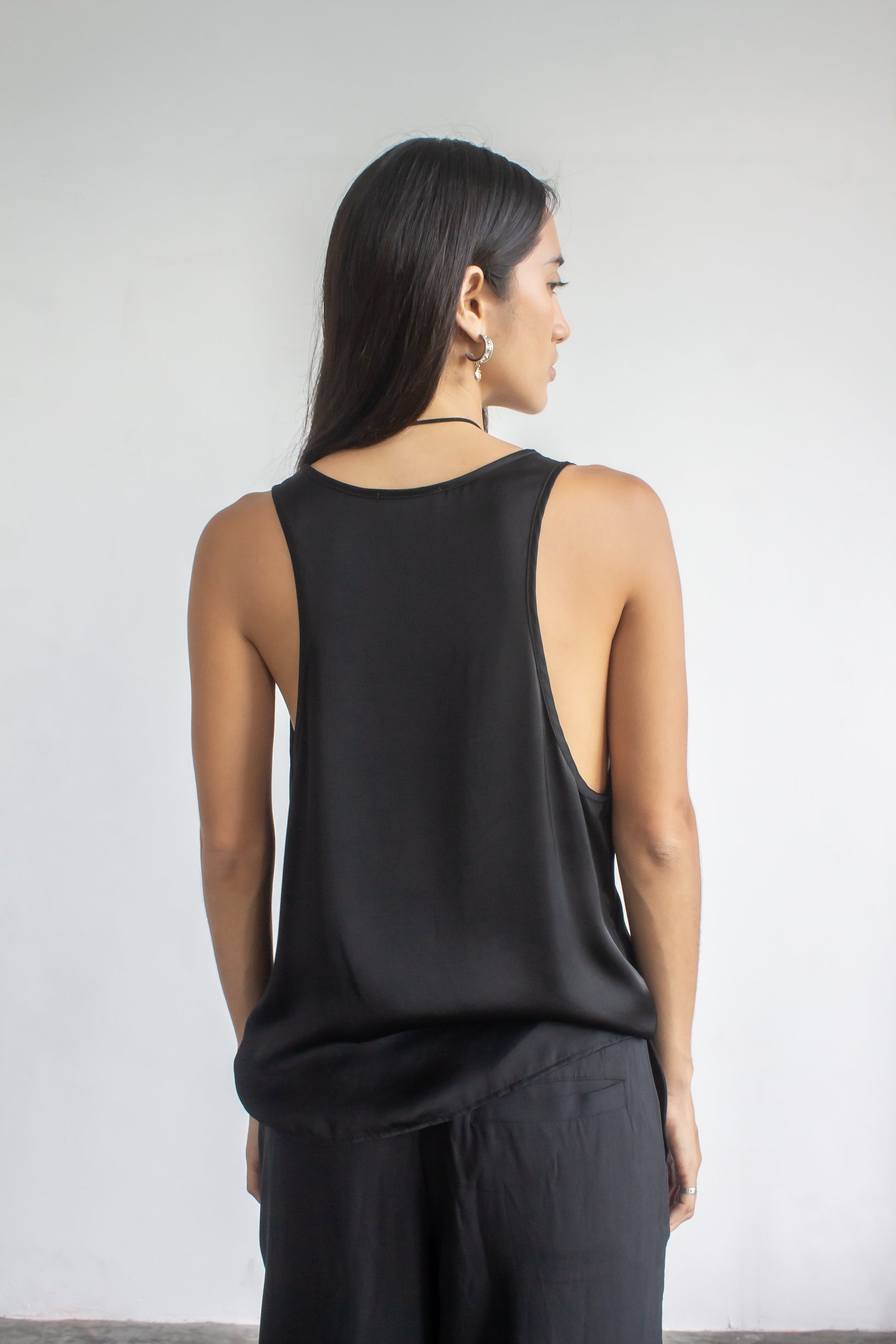 Cut from fluid satin, this top has a relaxed fit shaped by front darts and a flattering scoop neckline. Wear it solo with our satin palazzo pants for a night out, or pair it with classic pleated trousers for an office-ready summer look.
