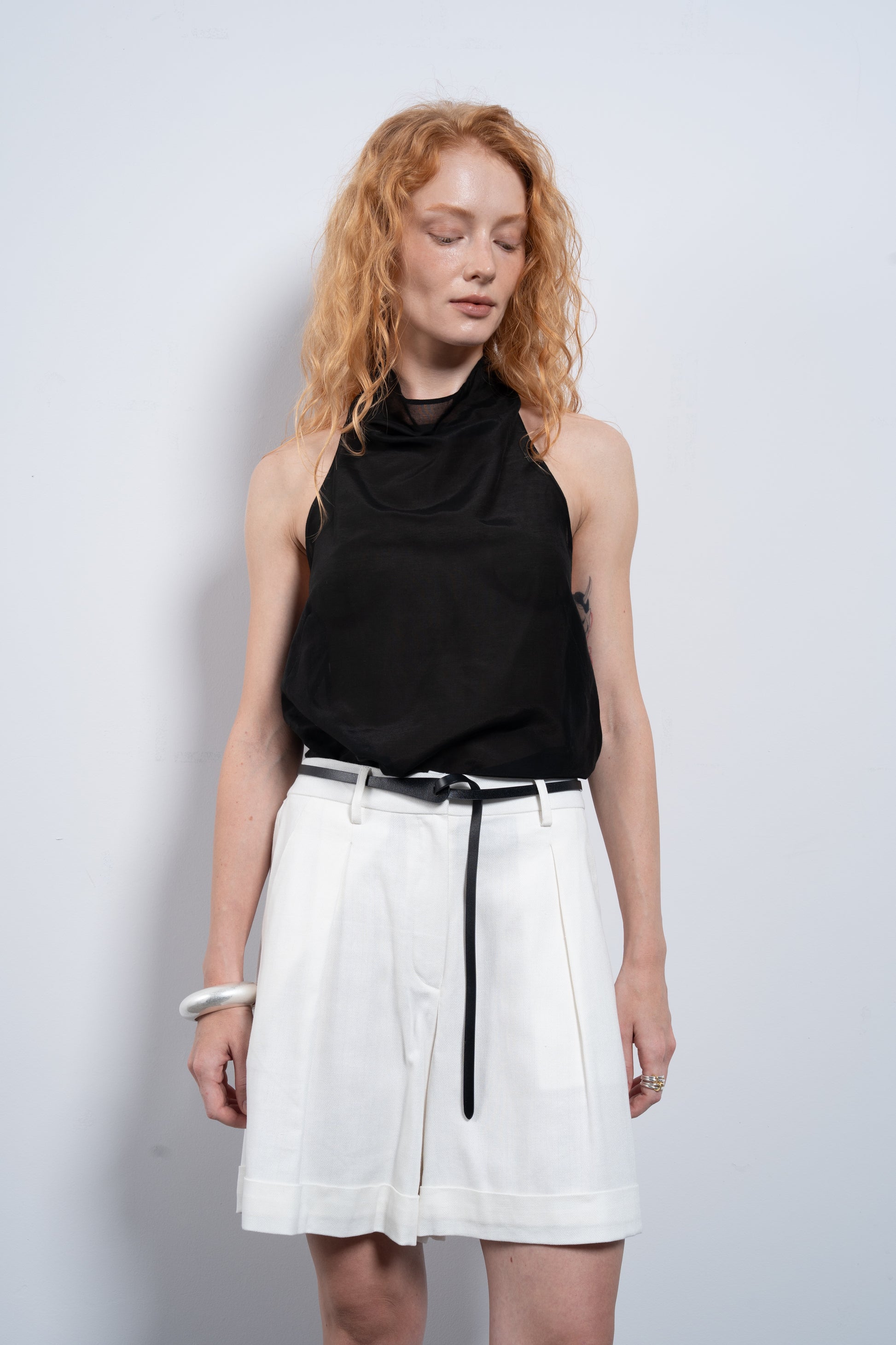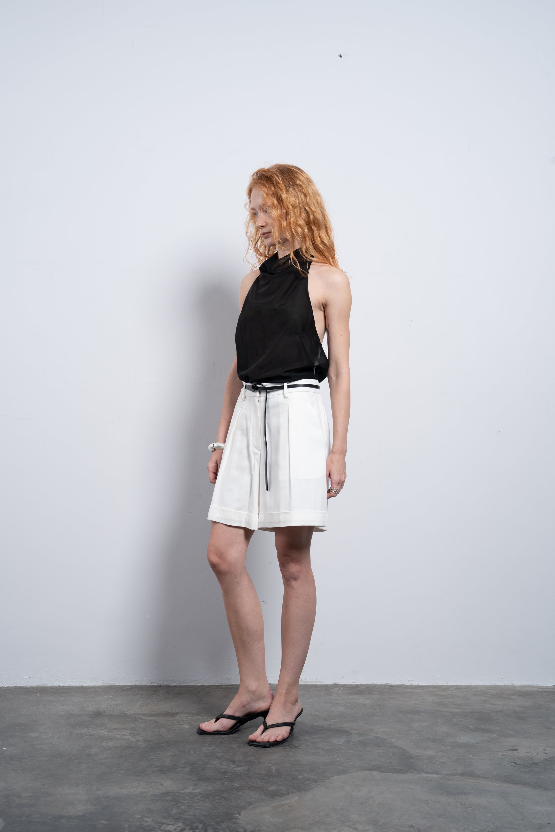 Halter top is from our new collection is filled with refined and elegant designs that are effortless to style. This top is cut from glossy silk chiffon with a draped halter neckline that frames the shoulders beautifully. Style yours with our satin pants or with your favorite pair of jeans.